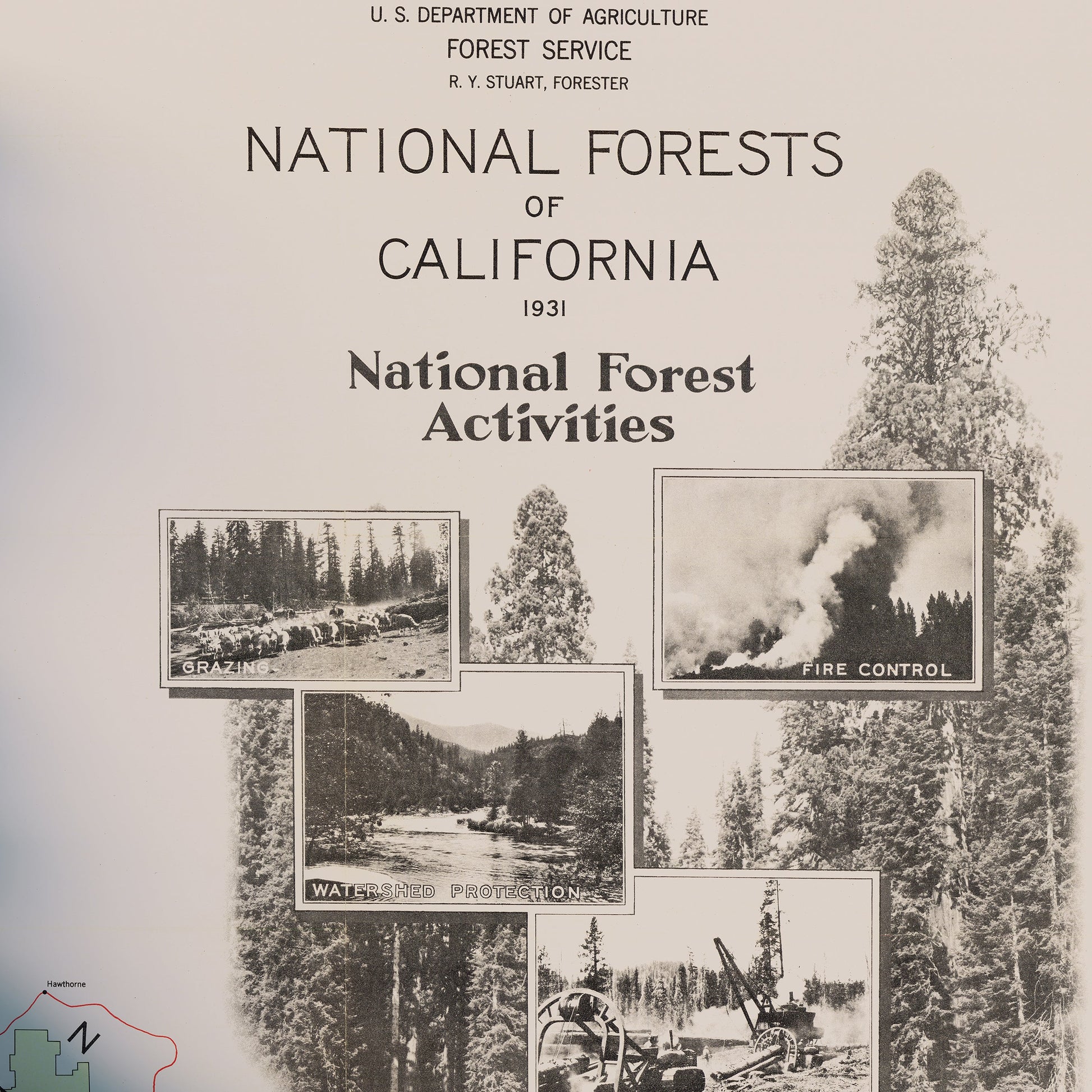 In the early 1930s, conservation awareness was on the rise in the United States, with the establishment of many national parks and forests. In California, there was a noticeable contrast between bustling urban areas and untouched wilderness, making it important for residents and visitors to grasp the geography of these protected spaces. This map focuses on national forests, traveled routes, and major highways to highlight how accessible and interconnected these wild areas are to the state's urban centers.