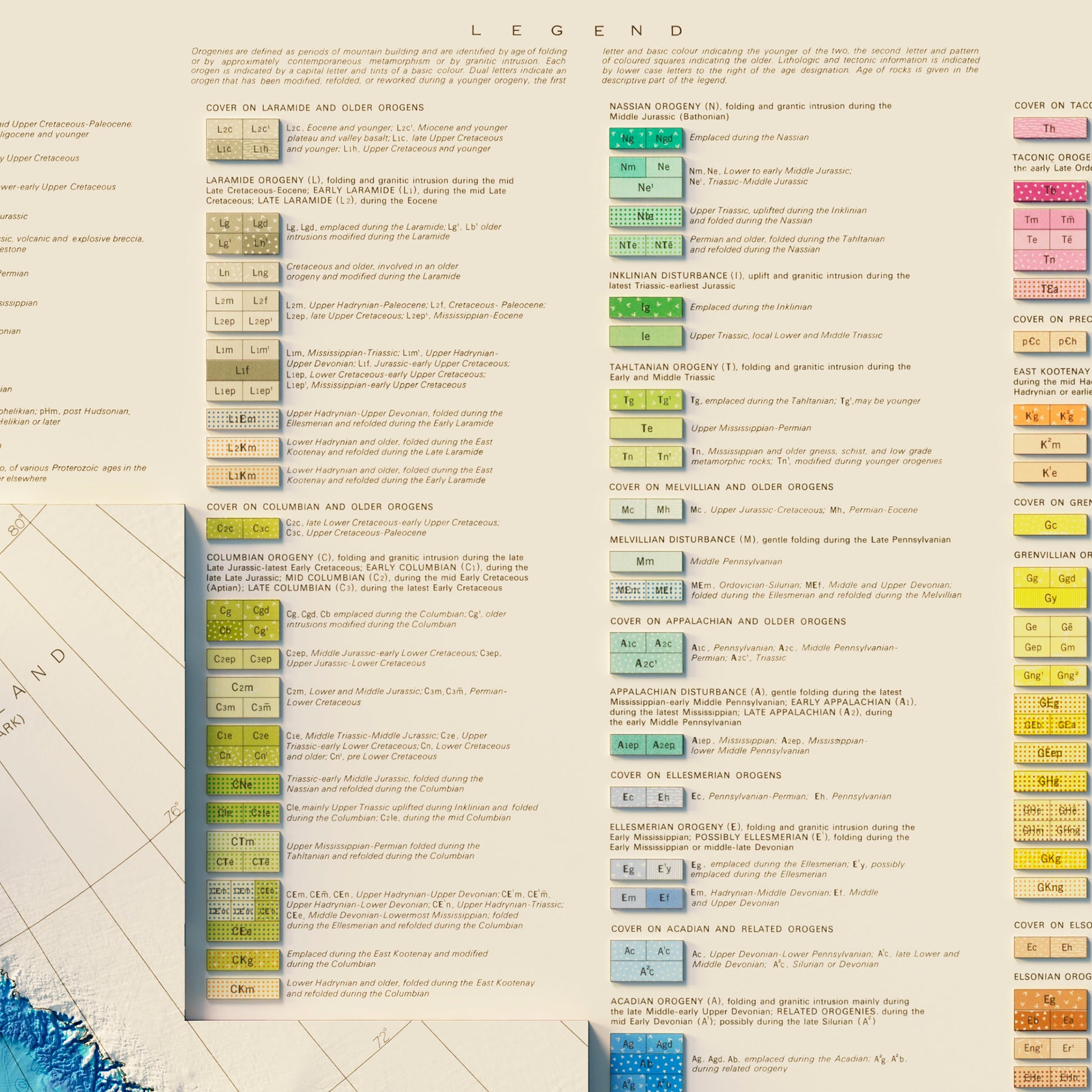 We created this map with the illusion of 3D by applying Digital Elevation Data and meticulously adding shaded relief to the landscape of the original 1956 Canada Geological map. The shading is printed on the paper and not a result of the map protruding from the surface.