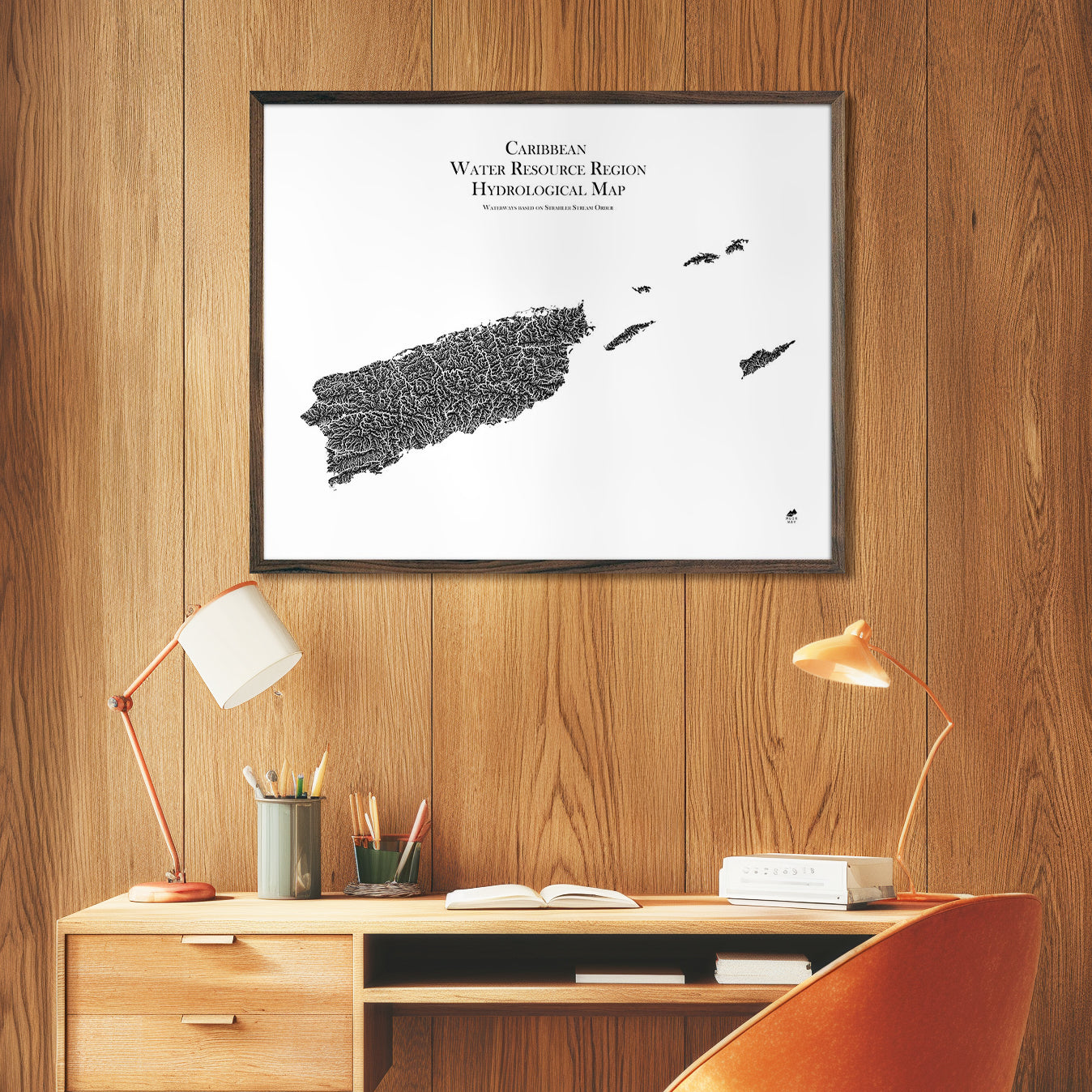 Water is literally the lifeblood of our country. If you’re drawn to water, you know that how and where it flows tells the story of a place. This map shows in fascinating detail how the rivers and streams of the Caribbean, Puerto Rico, and US Virgin Islands flow and interconnect, merge and diverge, carrying life to the land. The flow of water also has an inherent aesthetic elegance that our map captures beautifully.
