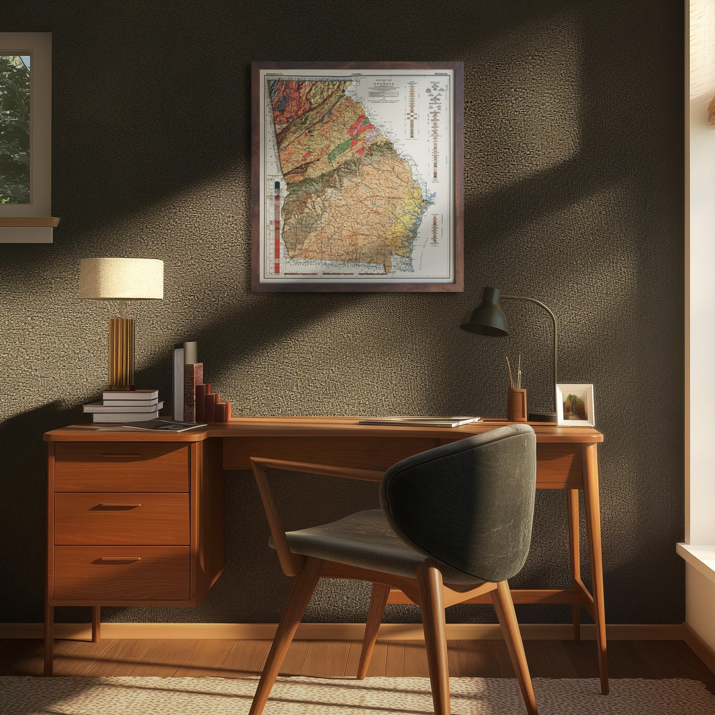 Framed maps do not have glass or acrylic over them, so you can touch the map and explore its intricacies.