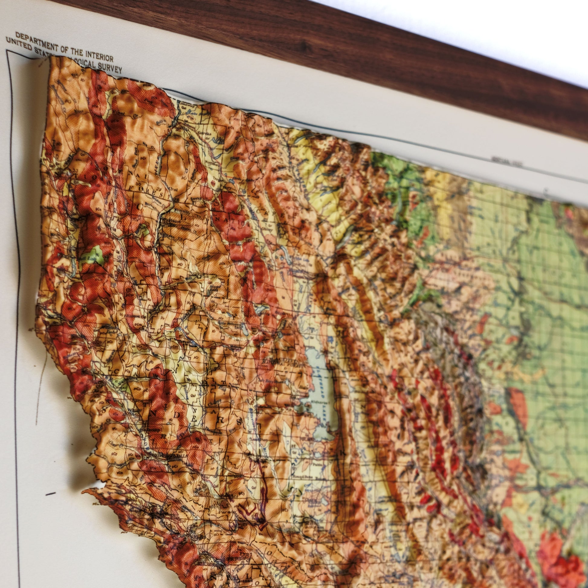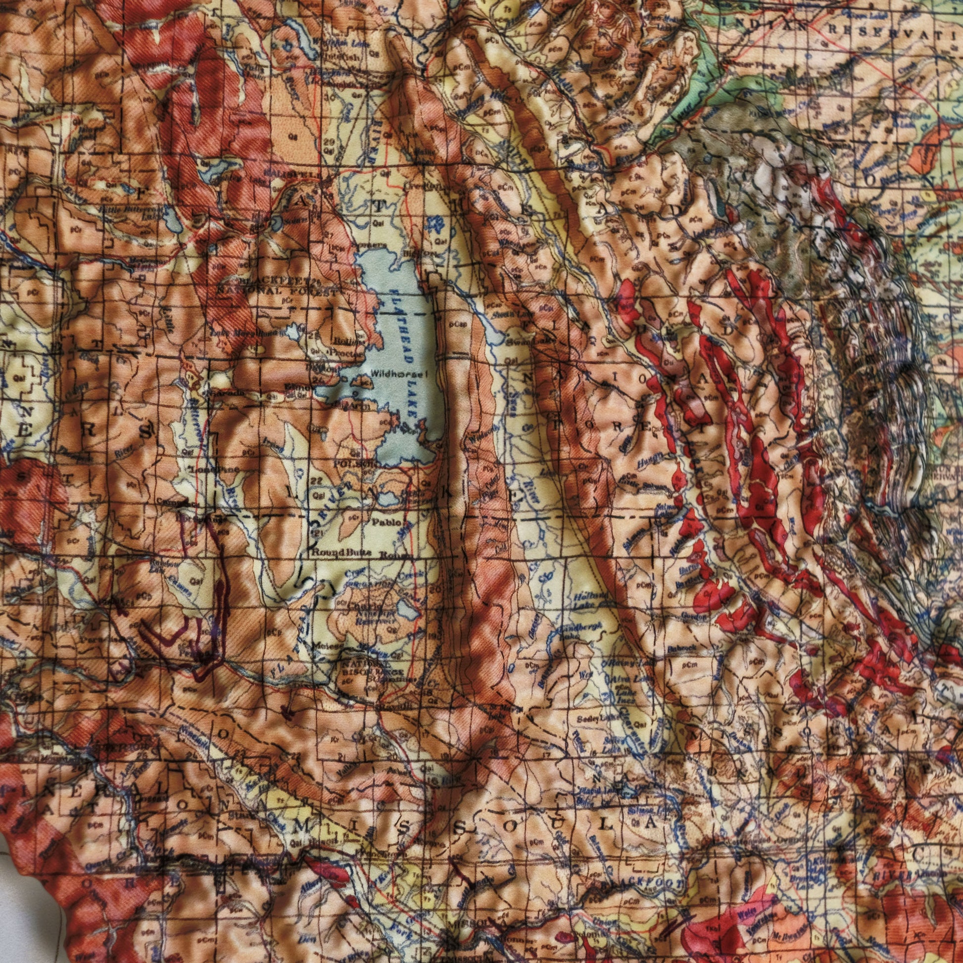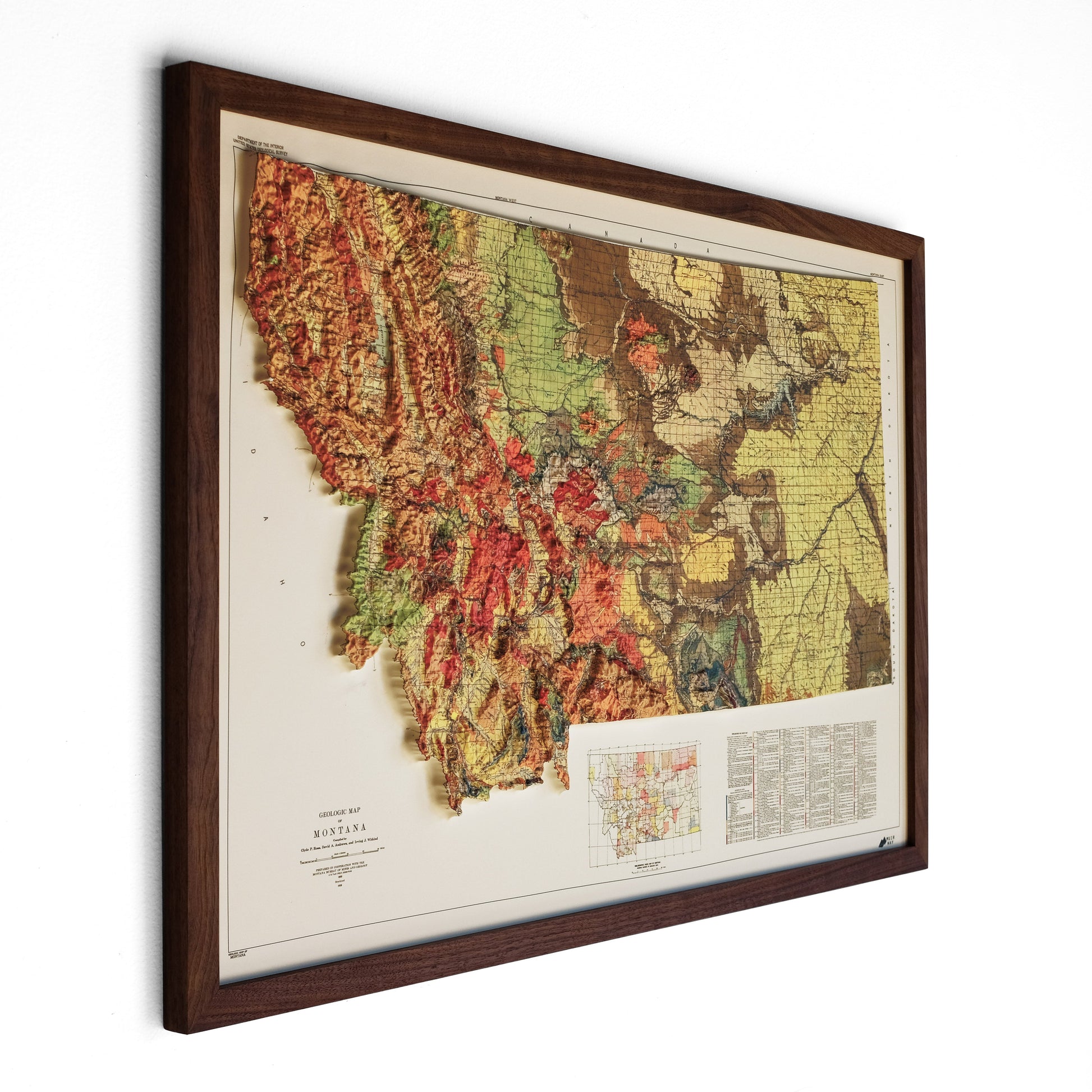 Explore the topography of Montana on the 1955 Geological Map of the state in stunning 3D Raised Relief, an original creation from Muir Way. This unique map undergoes a meticulous process where it is printed, heated, and vacuum-formed over an intricately detailed 3D mold. The result is a map that allows you to visually and tactically explore the diverse terrain of the state, from Glacier National Park to the Great Plains.