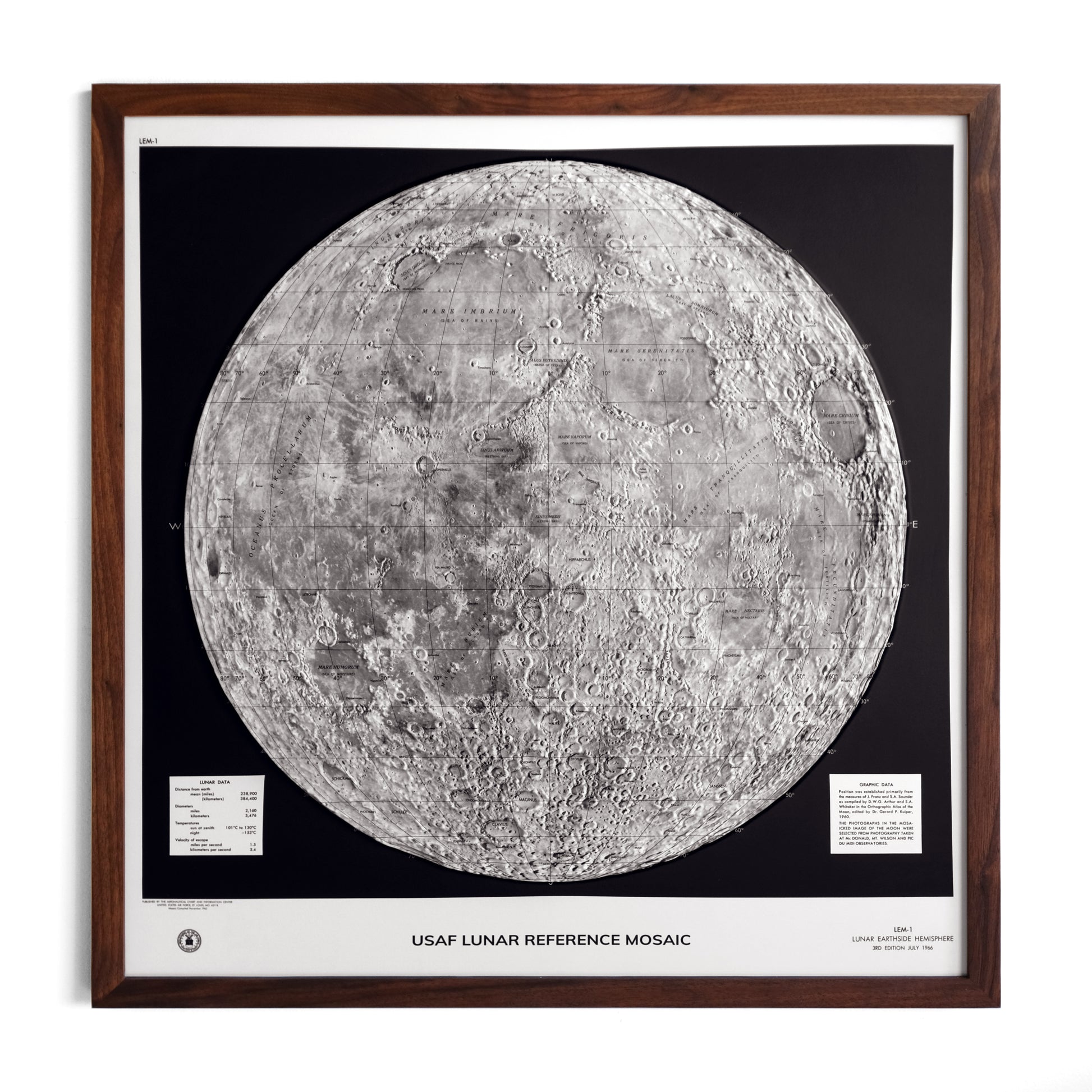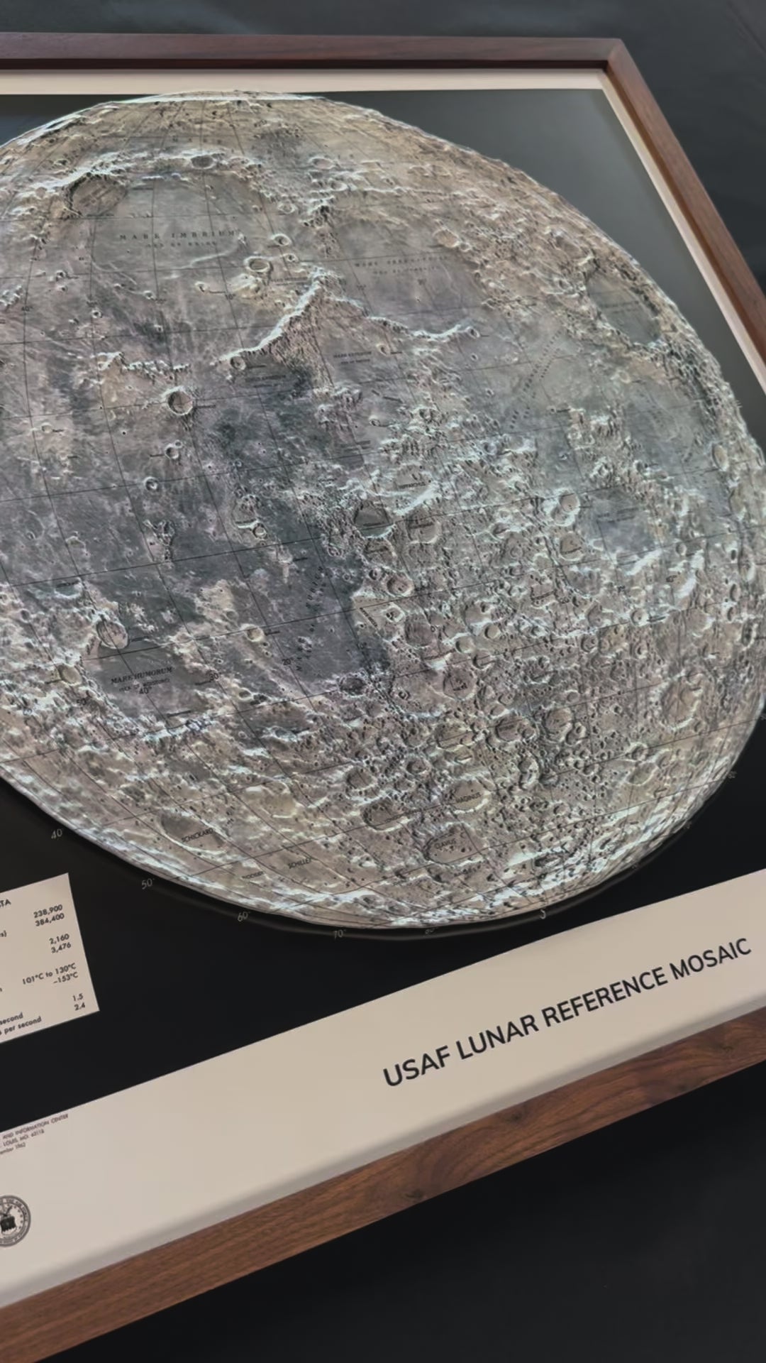 We transformed the 1966 map of the moon into a stunning 3D Raised Relief. The original map was created by NASA and the Department of Defense by compositing photographs from three observatories. The purpose of the map was to prepare for landing a manned spacecraft on the moon which they successfully accomplished in 1969.