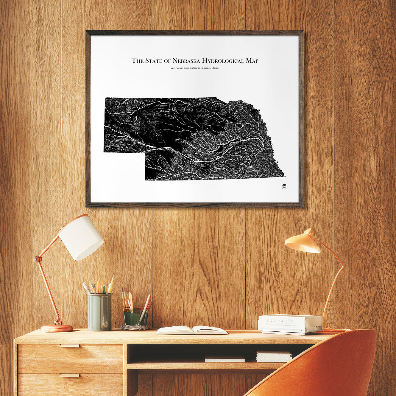 Water is literally the lifeblood of any state. If you’re drawn to water, you know that how and where it flows tells the story of a place. Our Nebraska Hydrological Map shows in fascinating detail how the state’s rivers and streams flow and interconnect, merge and diverge, carrying life to the land. The flow of water also has an inherent aesthetic elegance that our map captures beautifully.