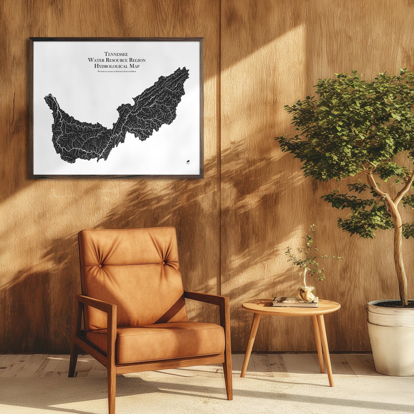 Water is literally the lifeblood of our country. If you’re drawn to water, you know that how and where it flows tells the story of a place. This map shows in fascinating detail how the rivers and streams of the Tennessee River Basin flow and interconnect, merge and diverge, carrying life to the land. The flow of water also has an inherent aesthetic elegance that our map captures beautifully.